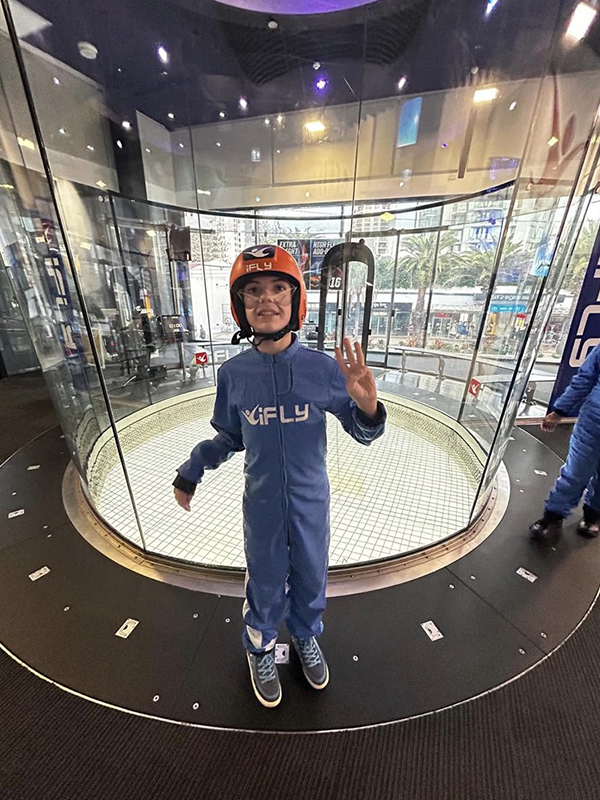 Now approaching his 14th birthday, Mikey lives life to the fullest on the Gold Coast. He enjoys motorbike riding (great bilateral therapy!), rollercoasters at MovieWorld, and even indoor skydiving. His journey is a powerful example of resilience and the incredible possibilities that hemispherectomy can bring.